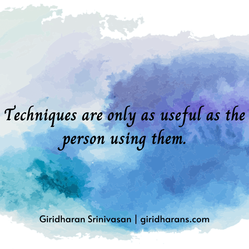 The world is full of techniques for everything. We invent techniques to overcome perceived physical barriers, or to solve the problems created by our thinking minds.